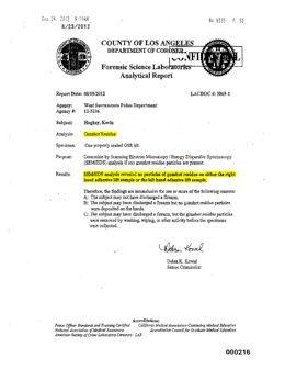 The lack of gunshot residue (GSR) shows that the victim was more than a few feet away from Wright when the shot was fired. Wright says there was a struggle for the gun.
